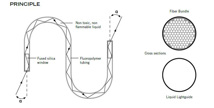 液體光導(dǎo)由帶有液體芯的聚合物管組成,它們不會破裂。像一根直徑非常大的石英纖維。它具有開放管道的橫截面,利用所有可用空間傳輸具有全反射率的光。能夠以更大的強(qiáng)度向目標(biāo)物體傳送光。